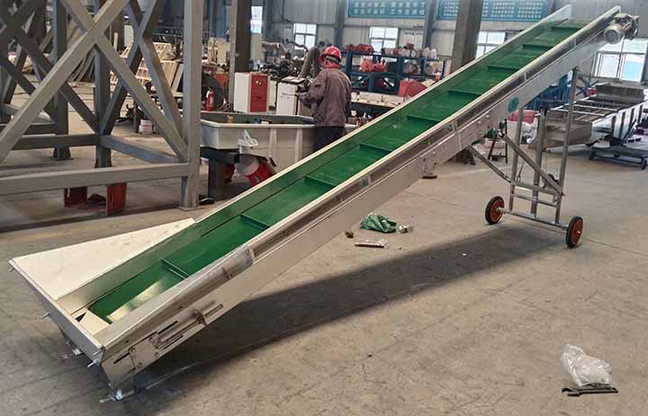 飼料生產線皮帶輸送機在畜禽飼料加工或水產飼料等中多有應用。可以選擇固定式、移動式、伸縮式或傾斜式,可以根據使用場合選擇。如果輸送包裝好的飼料,可以選帶有防滑花紋的皮帶,以防止袋子滑落。如果輸送散裝飼料可以在落料點加裝緩沖托輥或緩沖床,以免顆粒撞擊破碎。如果需要不同的皮帶機類型,可以在線聯系大漢機械,根據生產線配置或空間大小推薦適合的型號或者進行個性化定制。
